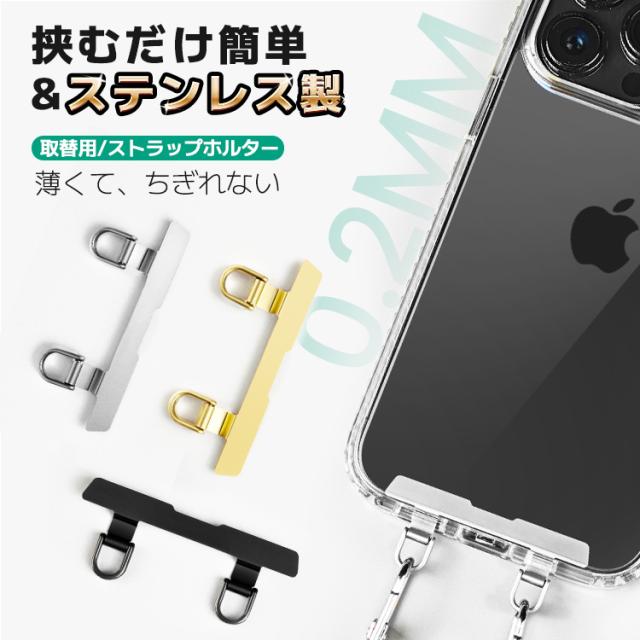 【ステンレス製】スマホ ストラップホルダー ステンレス 2口 ダブルリング iphone 16 15 14 13 12 ストラップ ホルダー スマホ ショルダー タイプ 落下防止 ホルダーだけ シンプル 無地 おしゃれ かわいい 単品 丈夫 頑丈 薄い 傷つかない