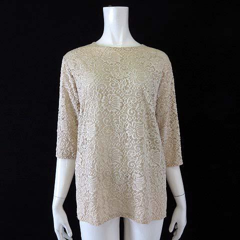 【中古】Access トップス 総レース カットソー 花柄 刺繍 ストレッチ 7分袖 L ベージュ レディース