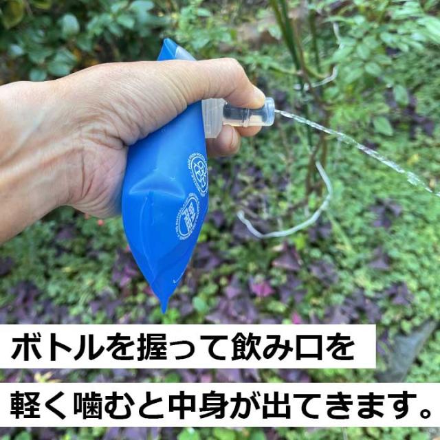 フラスクは飲むと圧縮されるので、水が跳ねたり揺れる心配もありません。正確な残量も一目で確認できます。ソフトフラスクは胴体が柔らかいビニール製なので、中身が入っていない時は折り畳んでコンパクトにできます。