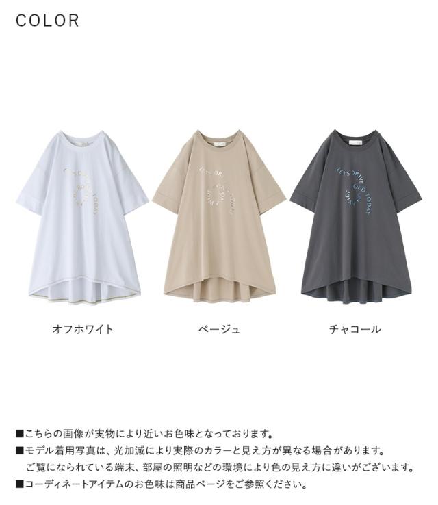 Tシャツ レディース トップス 半袖 箔 プリントT ロゴT フレア チュニック丈 折り返し袖 綿100% お尻が隠れる 春 夏 【TP】 カットソー プリントTシャツ チュニック プルオーバー クルーネック n'OrLABEL ノア—ルレーベル 大人女子 大人可愛い お洒落可愛い 大人カジュアル ベーシック ラフ オフィスカジュアル 上品 きれいめ ナチュラル ホワイト 白 オフホワイト ミディ丈 ミドル丈 ギャザー ロゴ 配色 無地 コットン100% シルケット加工 レイヤード 重ね着 おうちで洗える カジュアル シンプル モード キレカジ フェミニン ゆったり ゆる 楽ちん 二の腕カバー Sサイズ Mサイズ Lサイズ LLサイズ 3Lサイズ XLサイズ ぽっちゃり 体型カバー 大きいサイズ プラスサイズ 10代 20代 30代 40代 50代 60代 女子会 オフィス 通勤 通学 お買い物 お出掛け 旅行 リゾート レジャー おしゃれ お洒落 トレンド 流行 osharewalker オシャレウォーカー おしゃれうぉーかー ベージュ グレー 灰色 チャコールグレー チャコール[ID]12to03e