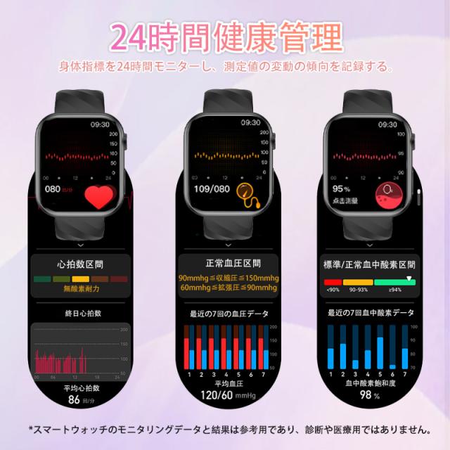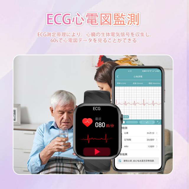 血糖、心拍数、血圧、血中酸素測定および他の健康、遠距離でも家族や友人のための機能のリモートケア機能。
