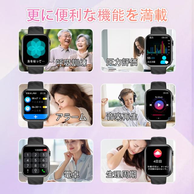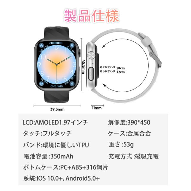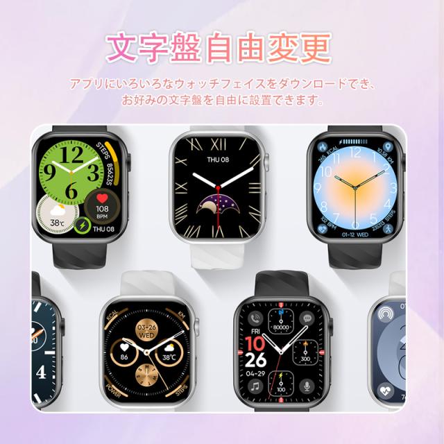 【Bluetooth5.3通話機能&音声アシスタント】スマートフォンとBluetooth接続すれば、電話の受信と応答を行うことができます。大切な電話を逃すことはありません。※※専用アプリと接続するとス マートウォッチで直接に電話をかけることや着信拒否も実現可能。運転中でも運動中でも両手を解放し、より効率的な通話ができます。音声アシスタント機能を搭載しており、スマートウォッチに話しかけるだけで音楽をかけてくれたり、アラームを設定してくれたり、スポーツモードを開始したりするなどの操作を実行できます。