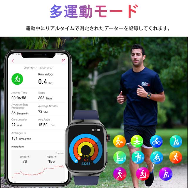 【2.04インチ大画面&多種類文字盤】HDの明瞭さで、健康とフィットネスの重要なデータを確認してください。3Dガラスの工芸に合わせて、より高い解像度の視覚体験とスマートフォンのようなタッチ触感を楽しめ、もっと便利に操作することができます。例のない快適な視覚感と優れた操作感をもたらし ます。多国の言語を自由に設定できます。更に、文字盤DIY機能もあり、携帯電話中の写真を利用して、お好きな文字盤を作る事もできます。毎日のお気持ちによって、新たな活力を注ぎます。好きな文字盤スタイルを取り替えましょう。