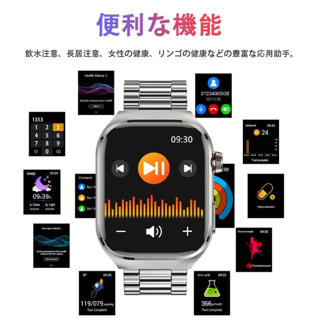 スマートウォッチ 血糖値 日本製センサー 尿酸値 血圧測定 血中酸素 脂質 睡眠/体温/ストレス監視 心拍数 活動量計 歩数計 iPhone Android対応 IP68防水 2.04インチ 天気予報 目覚まし時計 腕上げ点灯 音楽制御 SOS緊急連絡 座り過ぎ通知 女性生理管理 音声アシスタント スマホ探し 日本語取扱説明書