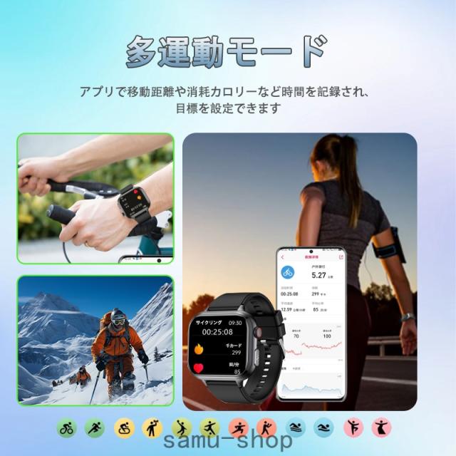 即日発送 スマートウォッチ 五臓健康管理 医療レベル心電図ECG+PPG 血圧 血糖値測定 BMI 尿酸値 血中脂質 血中酸素 睡眠監視 体温検知 ストレス監視 女性生理管理 心拍数 活動量計 歩数計 通話機能付き 着信通知 iPhone Android対応 敬老の日 プレゼント