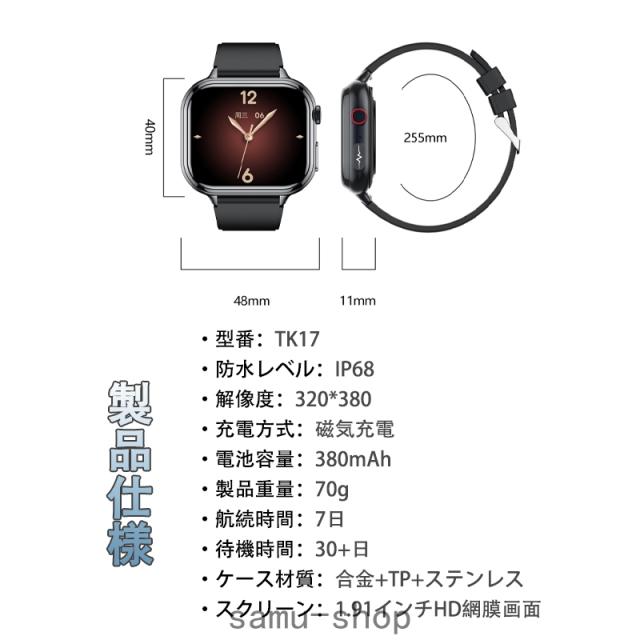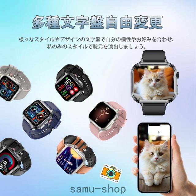 【DIY文字盤&多機能を搭載】- スマートウォッチの文字盤は固定ではありません。多くの文字盤から選べるだけではなく、お好みによって自分が好きな写真を文字盤に設定できます。 320* 380の高解像度と1.91インチのフルタッチスクリーンで、細かい文字でもはっきりと表示されます。他にも音楽コントロール、携帯を探す、腕上げ点灯、タイマー、ストップウォッチ、データ同期、女性生理管理など便利な機能を備えているので、男性でも女性でも使いやすいです!!生活、仕事の効率をさらに上げ、日常生活もより便利にしてくれます。