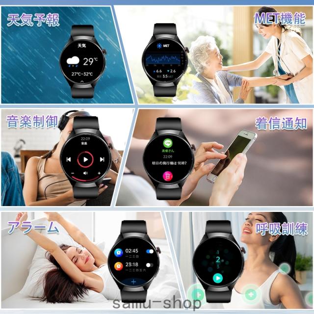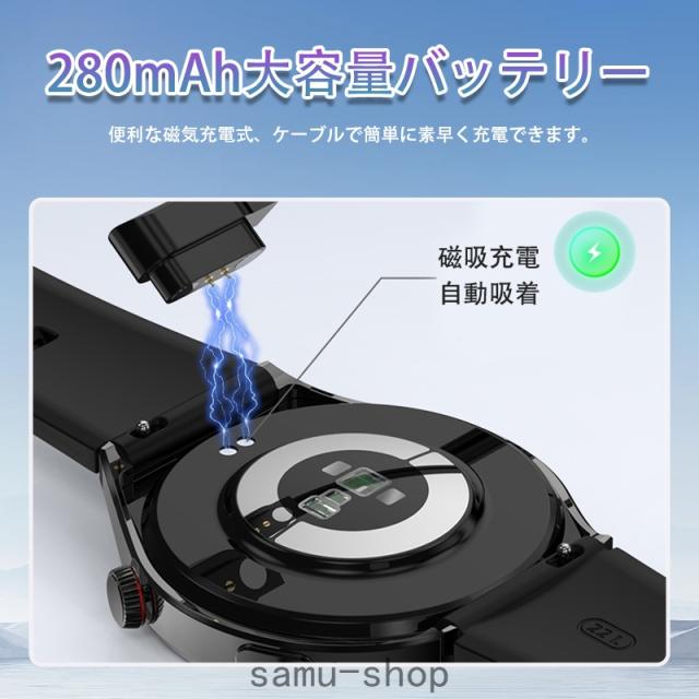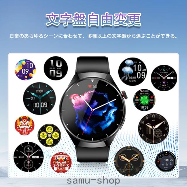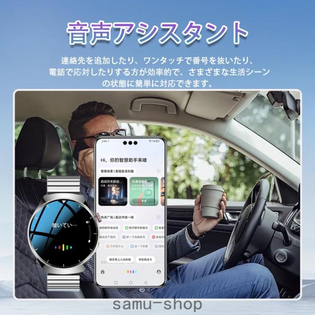 【Bluetooth5.1通話機能&音声アシスタント】スマートフォンとBluetooth接続すれば、電話の受信と応答を行うことができます。大切な電話を逃すことはありません。※※専用アプリと接続するとス マートウォッチで直接に電話をかけることや着信拒否も実現可能。運転中でも運動中でも両手を解放し、より効率的な通話ができます。音声アシスタント機能を搭載しており、スマートウォッチに話しかけるだけで音楽をかけてくれたり、アラームを設定してくれたり、スポーツモードを開始したりするなどの操作を実行できます。