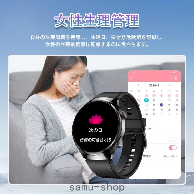 スマートウォッチ 血糖値 血圧測定 尿酸値 血中酸素 月経周期トラッキング ECG 心拍数 活動量計 iPhone Android対応 丸型 通話機能付き 睡眠検測 体温検知 座り過ぎ通知 着信&メッセージ通知 文字盤自由設定 音楽・カメラ制御 多国言語 日本語取扱説明書 プレゼント