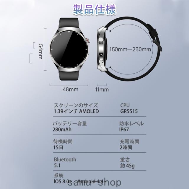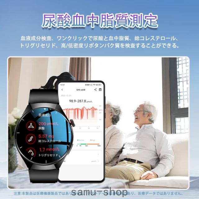 スマートウォッチ 日本製センサー 血糖値 尿酸値 血圧測定 血中酸素 睡眠/体温監視 心拍数 活動量計 歩数計 iPhone Android対応 IP67防水 1.39インチ 天気予報 目覚まし時計 女性生理管理 SOS緊急連絡 日本語取扱説明書