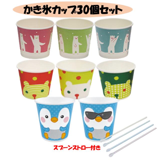 かき氷カップ 3種各10個セット+スプーンストロー100本付き (シロクマ10個・フラベア10個・ペンギン10個)
