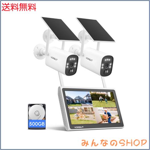 VORGUT 防犯カメラ 屋外 ソーラー モニター付き 監視カメラ ソーラー 400万画素 防犯カメラ 屋外 工事不要 双方向通話 2.4G&5G対応 屋外