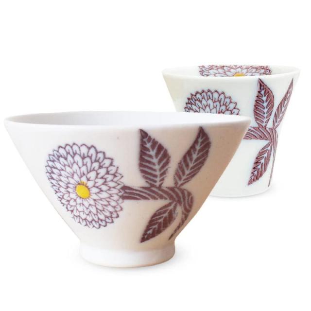 ダリアを北欧風にデザインしてみました。形もシンプルで程よい大きさのごはん茶碗と持ちやすく飲みやすいカップのセットです。