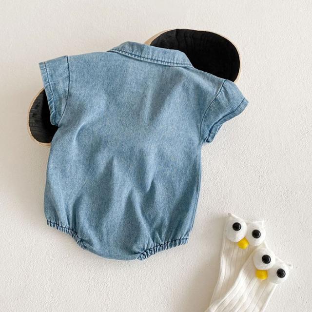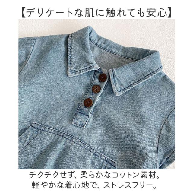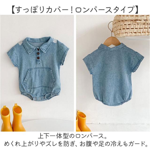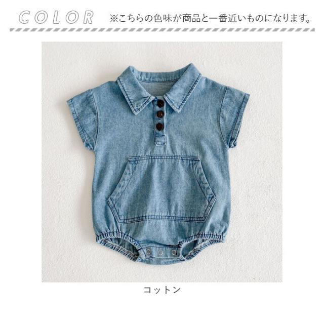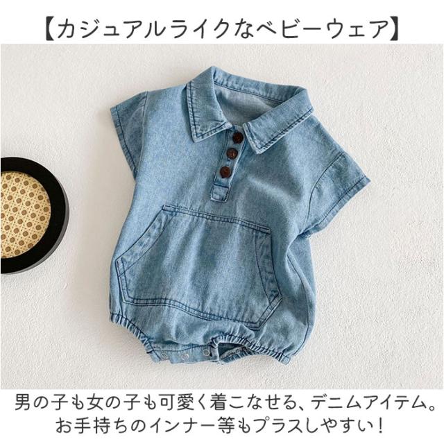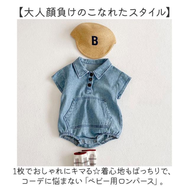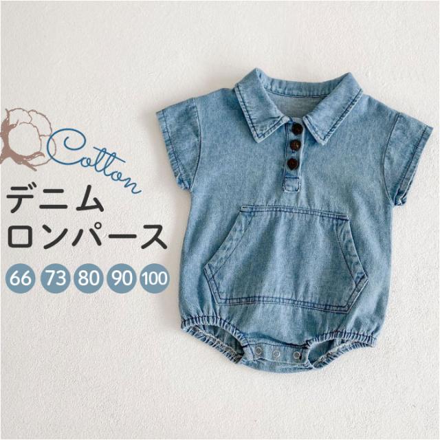 ロンパース 半袖 ベビー コットン 通販 半袖ロンパース カバーオール ベビー服 シャツ風 デニムシャツ風 デニム お部屋着 子供服 子ども服 新生児 赤ちゃん 男の子 女の子 綿 襟