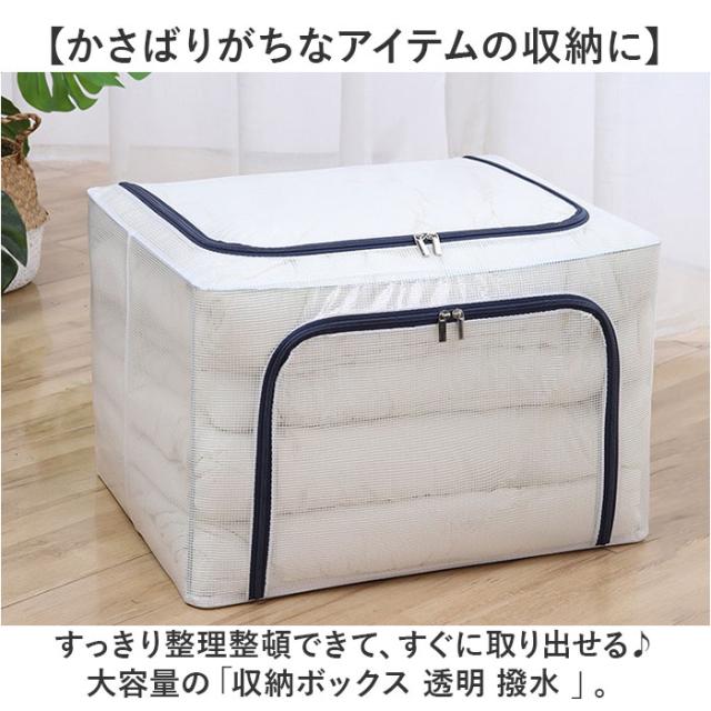 収納ボックス 透明 はっ水 大容量 通販 収納ケース 衣装ケース 収納BOX 収納 ケース ボックス 折り畳み収納ボックス 折り畳み 折りたたみ 透明窓 取っ手付き 蓋付き ファスナー