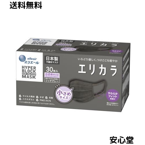 エリエール (日本製 不織布) Zutto(ハイパーブロックマスク) エリカラ リッチグレー 小さめサイズ 30枚入 PM2.5対応