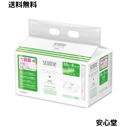 スコッティ ウェットティシュー 除菌 ノンアルコールタイプ 58枚×6個セット