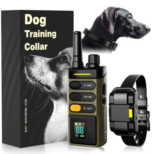 無駄吠え防止首輪 専門しつけ首輪 吠え防止1500メートル リモコン 4つのトレーニングモード 振動 衝撃 ビープ音高輝度LEDによる充電式 小型犬 中型犬 大型犬用 むだぼえ防止 犬訓練 2つの防吠え首輪1つのリモコン (ブラック + オリーブグリーン)