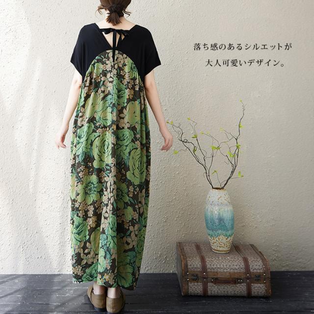 大きいサイズ ワンピース 花柄 ロング丈 夏用 ゆったり バックリボン (363907)