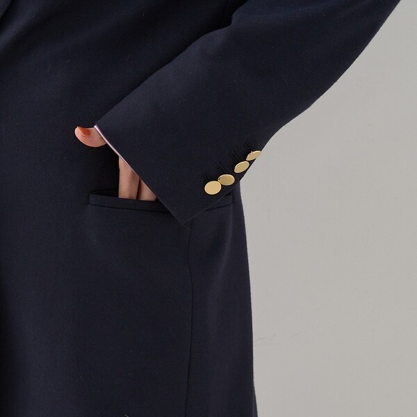 襟元にはAMFステッチ、ラペルにはフラワーホールといった