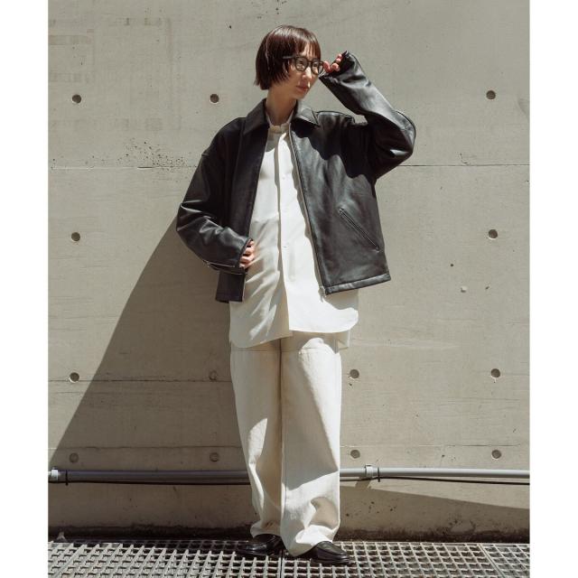 ・ミリタリー要素などのクセを省いた、非常にシンプルなデザイン。レザーアウターを初めて選ぶ方の1着目にも最適