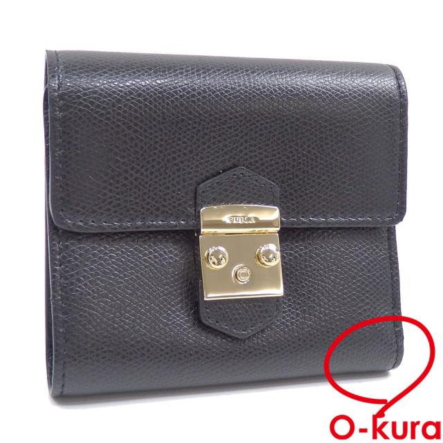 中古 フルラ 三つ折り 財布 レディース ブラック 黒 レザー