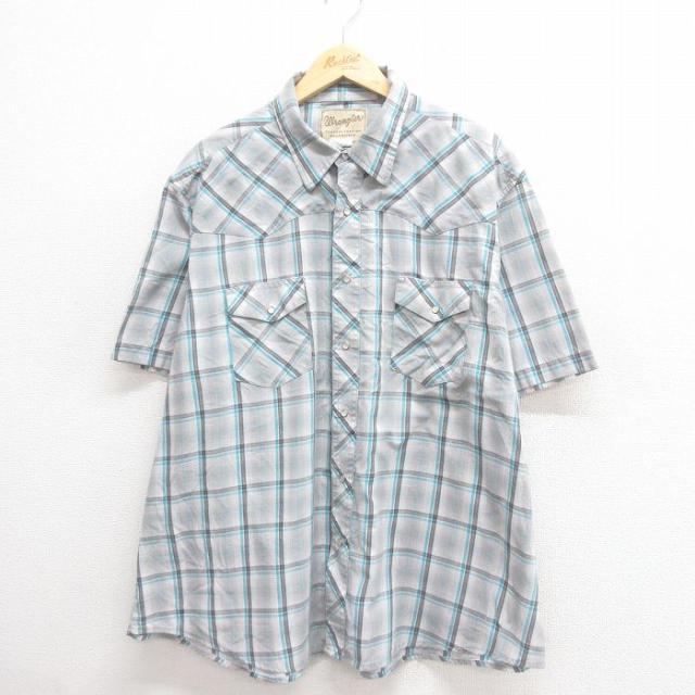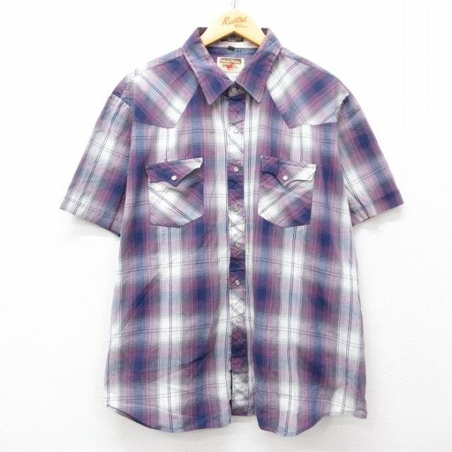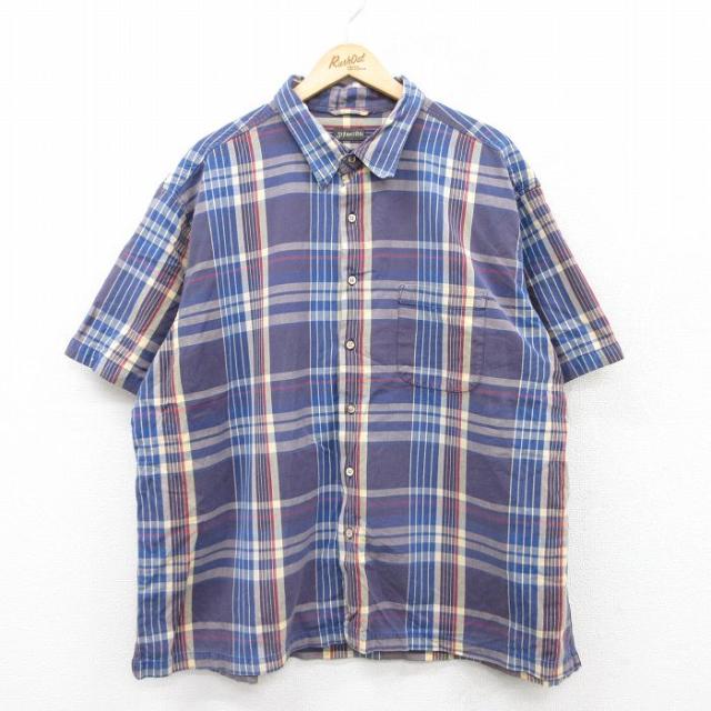 古着 セントジョンズベイ 半袖 シャツ メンズ 大きいサイズ 紫他 パープル チェック XLサイズ 中古 トップス 中古 古着