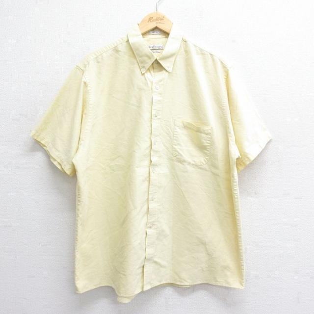 古着 半袖 シャツ メンズ 80年代 80s 大きいサイズ 黄 イエロー XLサイズ 中古 トップス 中古 古着