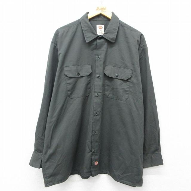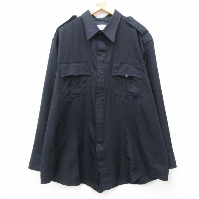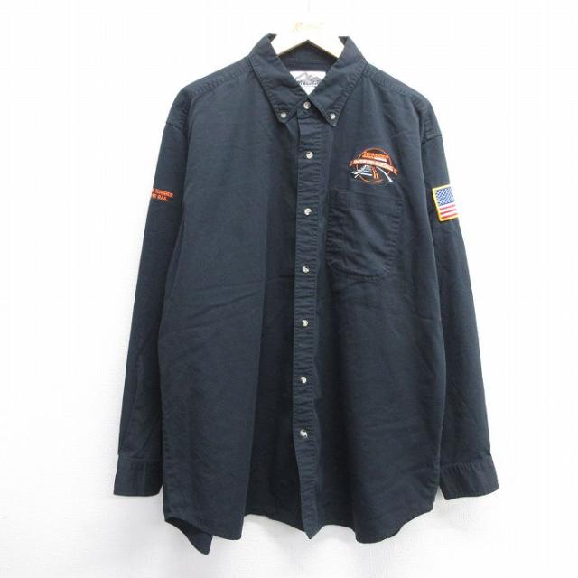 【商品名】 XL★古着 長袖 ワーク シャツ メンズ ミシシッピ 大きいサイズ ロング丈 黒