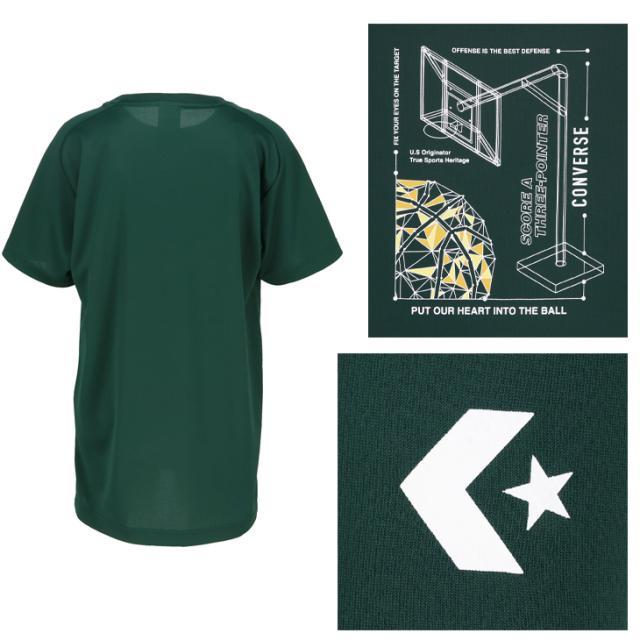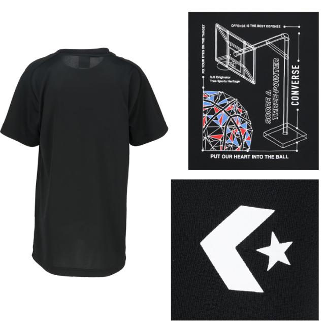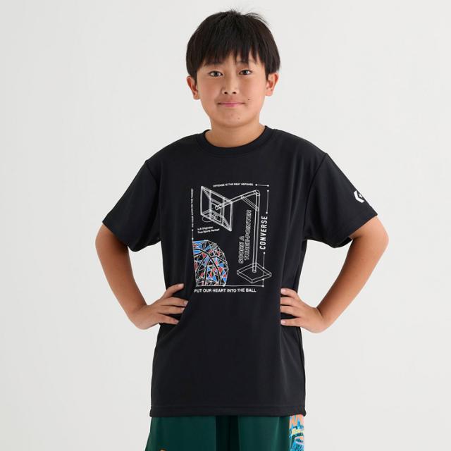 コンバース キッズ ジュニア 半袖シャツ 130-160cm 子供服 CONVERSE プリントTシャツ ミニバス バスケットボールウェア スポーツウエア 吸汗速乾 子ども用 男の子 女の子 トップス バスケシャツ こども 練習着 スポーツTシャツ ブランド アパレル/CB452352