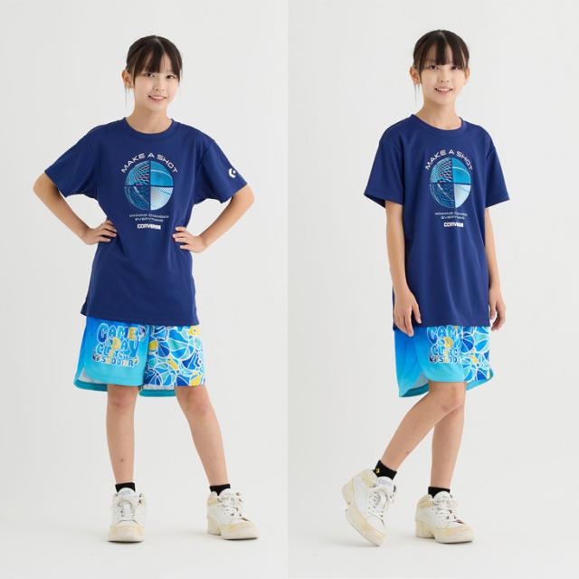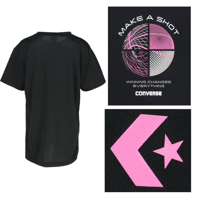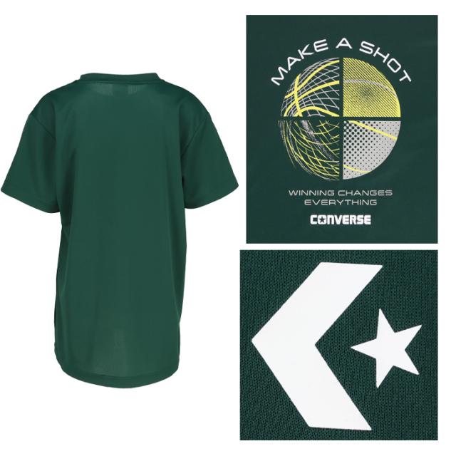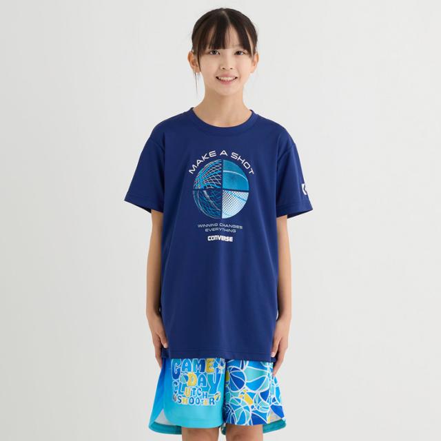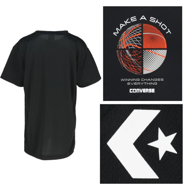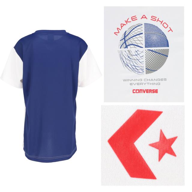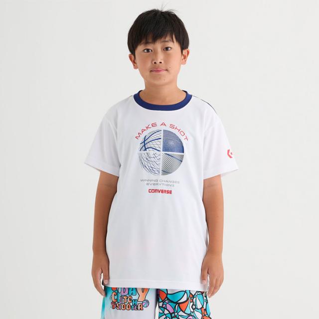 コンバース キッズ ジュニア 半袖シャツ 130-160cm 子供服 CONVERSE プリントTシャツ ミニバス バスケットボールウェア スポーツウエア 吸汗速乾 子ども用 男の子 女の子 トップス バスケシャツ こども 練習着 スポーツTシャツ ブランド アパレル/CB452354
