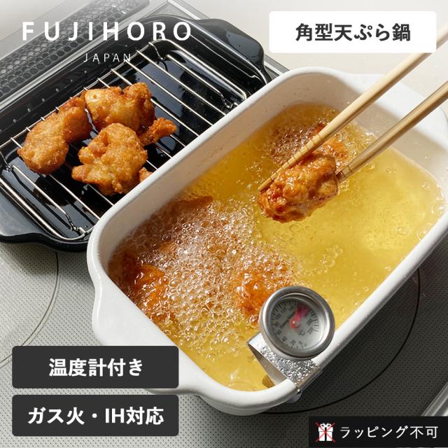 富士ホーロー 角型天ぷら鍋 | 揚げ物 天ぷら エビフライ 唐揚げ すのこ バット 温度計付き 角型 四角 コンパクト スリム【ラッピング不可】 ts1031