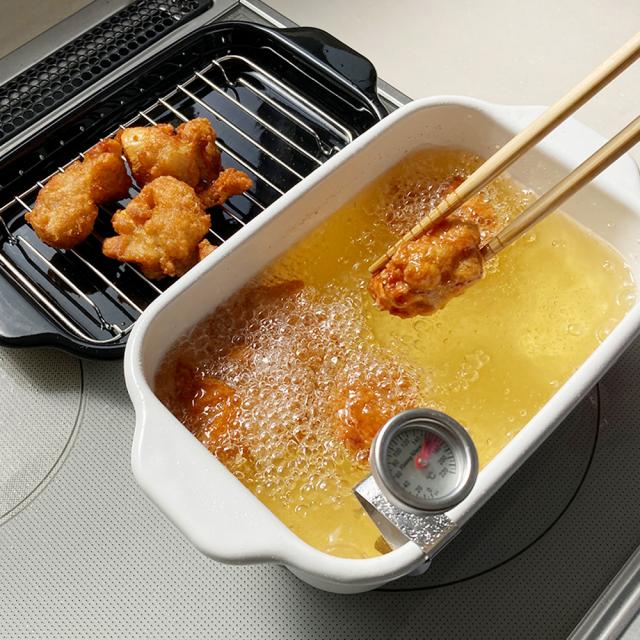 見やすい、揚げやすい、洗いやすい。 小さめなのに長い食材も調理しやすい! | 温度計付きでベストを逃さない