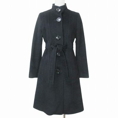 【中古】マイケルマイケルコース アンゴラ ロングコート Aライン ベルテッド スタンドカラー 4 S相当 ブラック IBO70