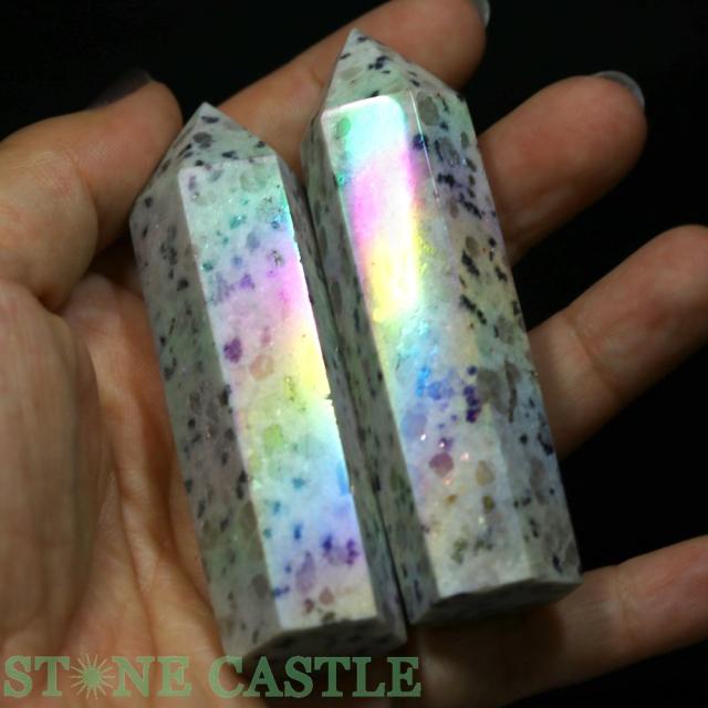 ☆一点物☆【置き石】ポイント型 キウイクォーツオーラ (2本セット) No.23 天然石 パワーストーン