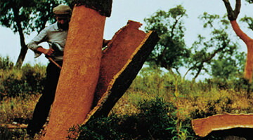 コルクの木(コルク樫)は170〜200年成長します。5cmの厚みがあるコルク樫の樹皮表皮を取ったあとは、10年程度で再び元通りの状態になります。コルクには通常1㎤あたり約4000万個の蜂の巣状の空気を含んだ空洞があり、その構造から弾力性が生まれます。また、圧縮されても再び空洞の中に空気が入り元の形に戻ろうとします。 |