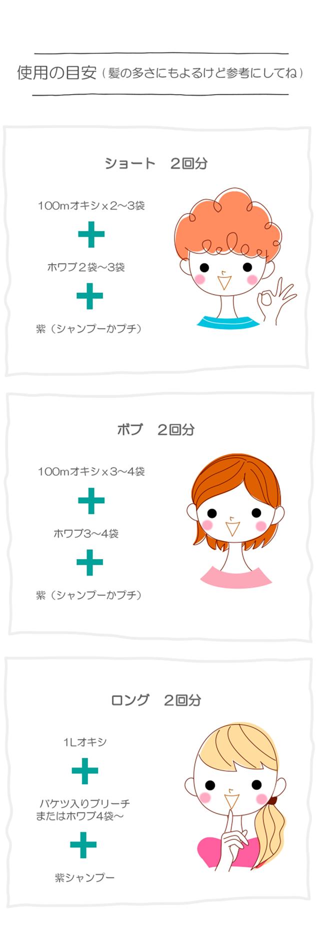 また、別売りになりますが黄ばみ・赤みを取る為の、ホワイトニングシャンプーなどを使い続ける事によって、髪を傷める事なく、黄ばみ、赤みをより白っぽく見せる事ができ、きれいなプラチナホワイトにすることができます。