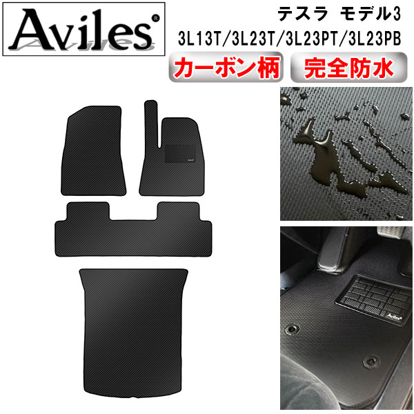 防水マット TESLA テスラ モデル3 フロアマット + トランクマット (ラゲッジマット) カーボン柄