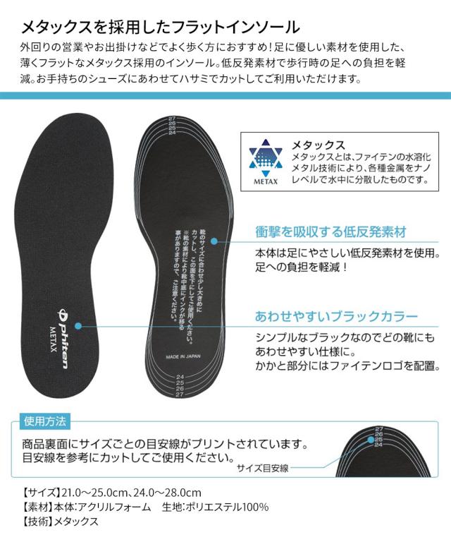 phiten ファイテン インソール 中敷き 薄い フラットタイプ メタックス 疲れない クッション スポーツ 立ち仕事 足の疲れ 衝撃吸収 メンズ レディース ジュニア 小学生 中学生 高校生 大人 旅行 部活 ジム ウォーキング ランニング TI463003 TI463004 1足
