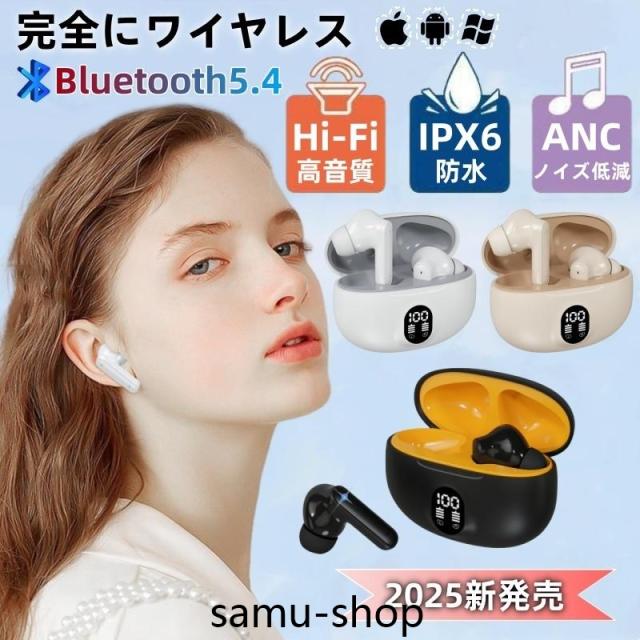 即日発送 ワイヤレスイヤホン Bluetooth5.4 イヤホン ノイズキャンセリング 高音質 HiFi 両耳 片耳 軽量 残量表示 重低音 音量調整 IPX6防水 カナル型 iPhone Android プレゼント