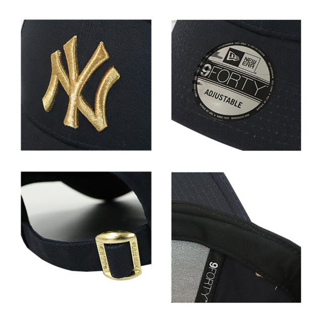 NewEra/ニューエラの9FORTYシリーズから、MLB/メジャーリーグベースボールの人気球団 NEW YORK YANKEES/ニューヨーク・ヤンキースとLOS ANGELES DODGERS/ロサンゼルス・ドジャースの6パネルキャップが入荷。シックなダークネイビー色のボディに、フロントのチームロゴと左サイドのブランドロゴ、アジャスターの金具までゴールドで統一された華やかかつ高級感溢れるデザイン。