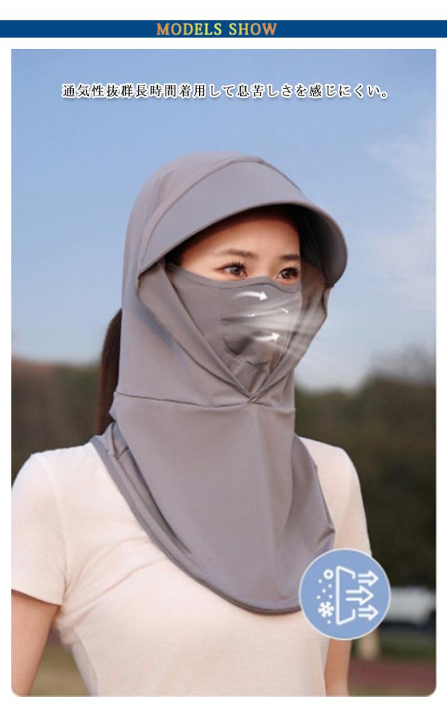 帽子付き フェイスカバー フェイスカバー マスク uvカット レディース 冷感 夏用 肌着に優しい 吸汗 速乾 接触冷感 ひんやり 息苦しくない 日焼け防止 通気性 ネックウォーマー ネックカバー 耳掛け アウトドア 登山