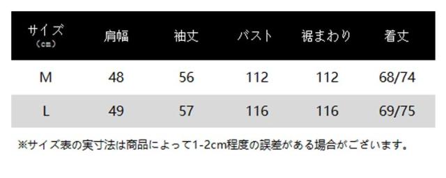| ●サイズ詳細等の測り方はスタッフ間で統一、徹底はしておりますが、実寸は商品によって若干の誤差(1cm〜3cm )がある場合がございますので、予めご了承ください。 ●商品の色は、撮影時の光や、お客様のモニターの色具合などにより、実際の商品と異なる場合がございます。あらかじめ、ご了承ください。 ●製品によっては、生地の特性上、洗濯時に縮む場合がございますので洗濯時はご注意下さいませ。 ▼色味の強い製品によっては他の衣類などに色移りする場合もございますので、速やかに(脱水、乾燥等)するようにお願いいたします。 ▼生地によっては摩擦や汗、雨などで濡れた時は、他の製品に移染する恐れがございますので、着用の際はご注意下さい。 ▼生地の特性上、やや匂いが強く感じられるものもございます。数日のご使用や陰干しなどで気になる匂いはほとんど感じられなくなります。 | |
