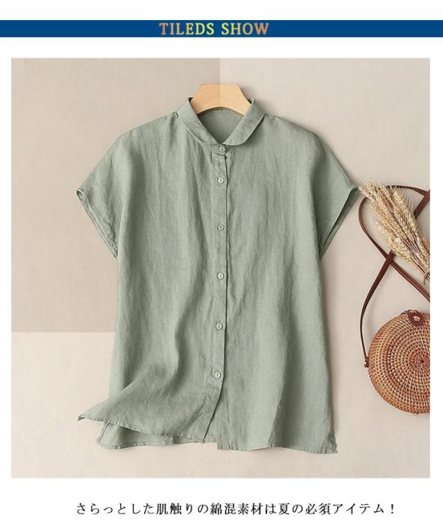 シャツブラウス シャツ カジュアル ブラウス 半袖 前開き 綿 森ガール トップス 無地 大きいサイズ 薄手 きれいめ 通勤 シンプル 涼しい おしゃれ 着回し レディース