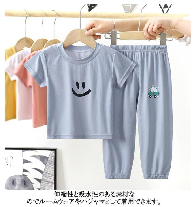 パジャマ キッズ 半袖 長ズボン 子供 男の子 女の子 上下セット 接触冷感 涼感 ひんやり 子供パジャマ 半袖パジャマ 子供 子ども こども 子供服 子ども服 こども服 ルームウェア ジュニア 春 夏 男子 女子 男児 女児 部屋着 寝巻き セットアップ ナイトウェア