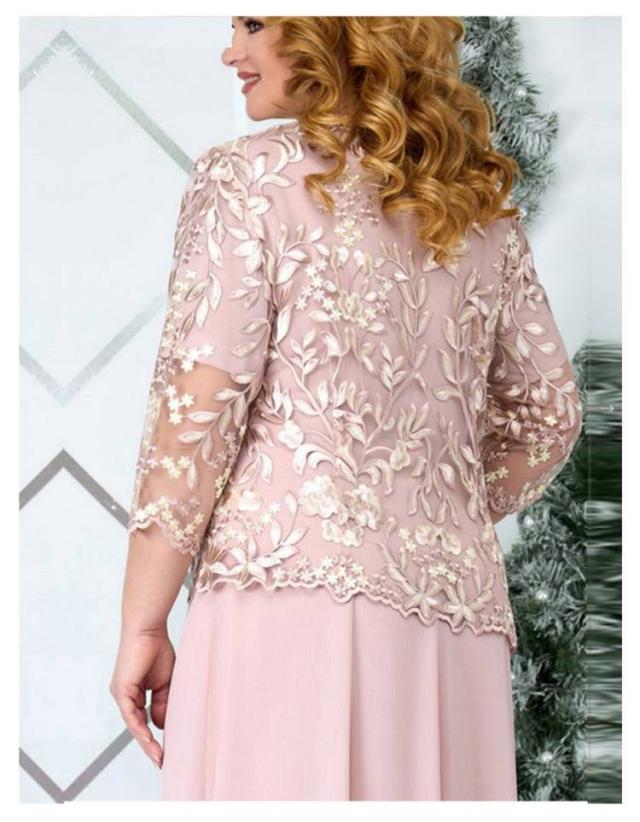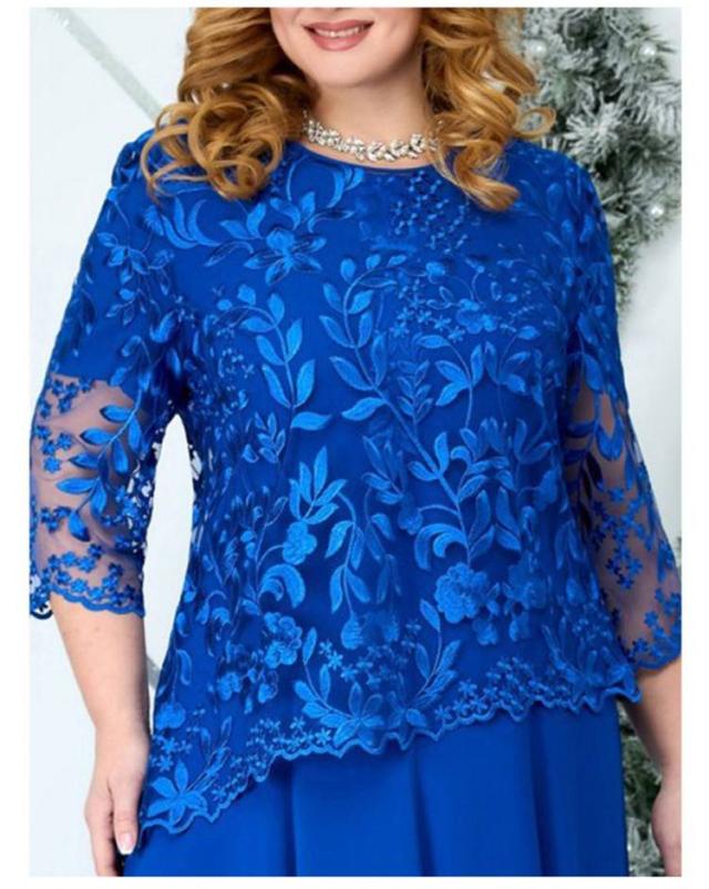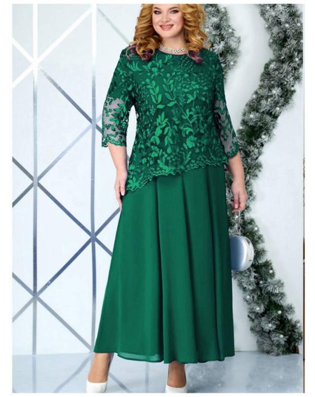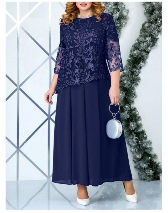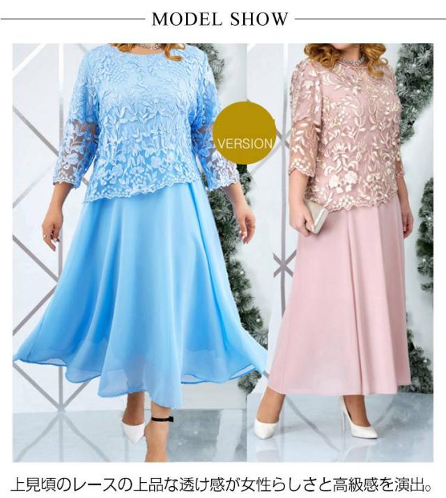 大きいサイズ ドレスワンピース パーティードレス 7分袖 透け感 レース 重ね着風 マキシ丈 フレア 結婚式 ぽっちゃり ワンピース 体型カバー お洒落 かわいい 大人 上品 フォーマル 40代 50代 お呼ばれ マザーズドレス 母 二次会 披露宴 お呼ばれ