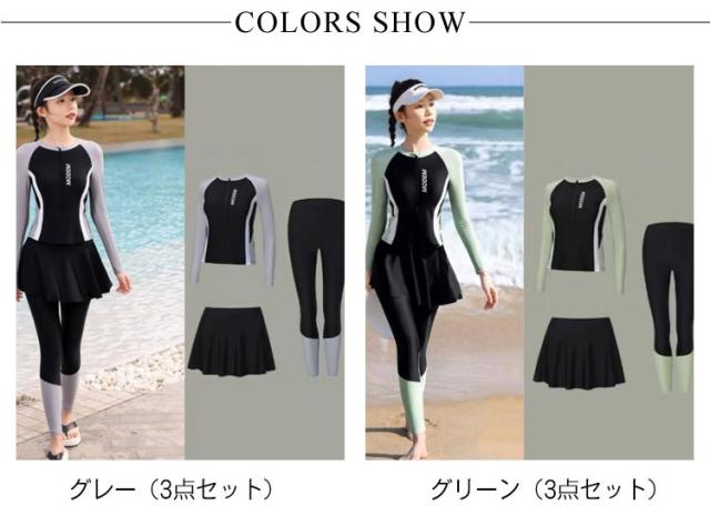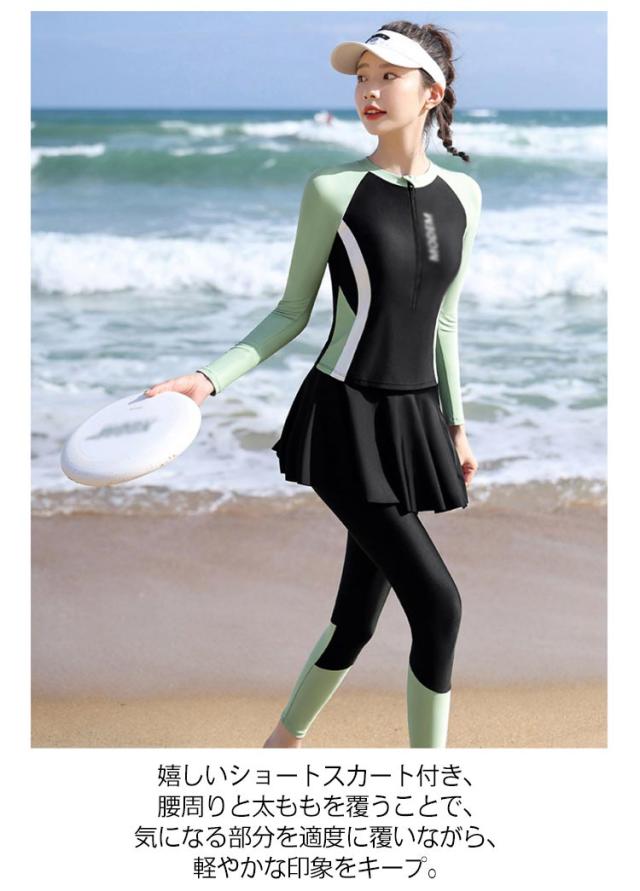 レディース 水着 3点セット 長袖 ラッシュガード 水陸両用 レギンス スカート UVカット 速乾 胸パッド付き ママ水着 上下 セパレート 海 温泉 ウェットスーツ 水遊び スクール フィットネス 水着 露出控えめ 送料無料