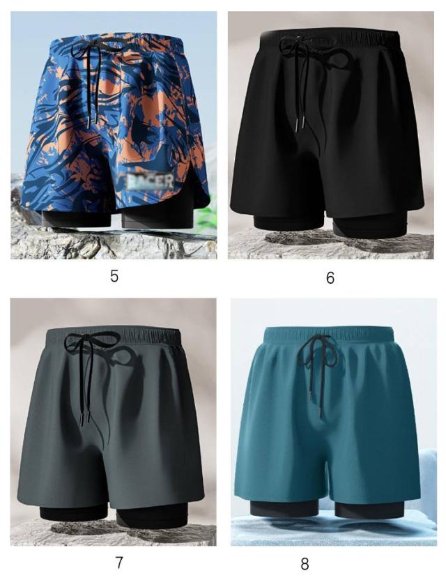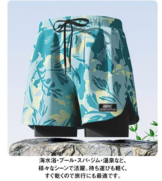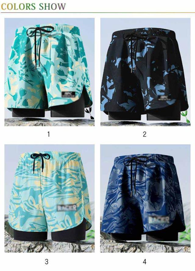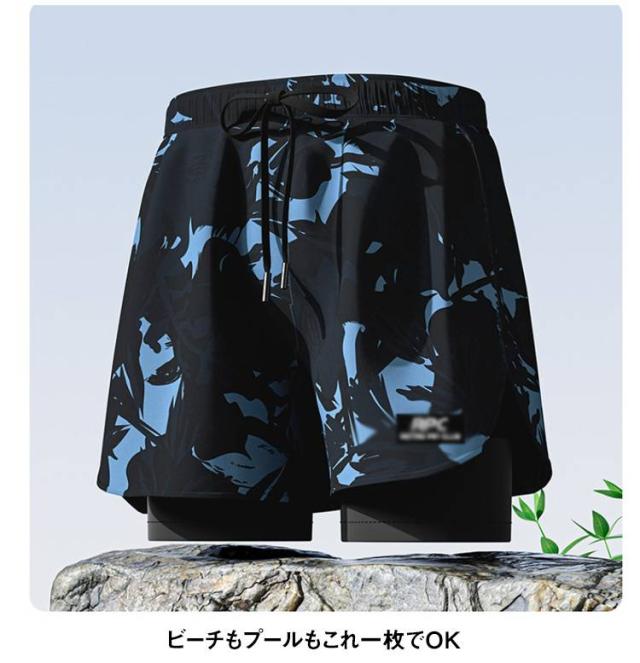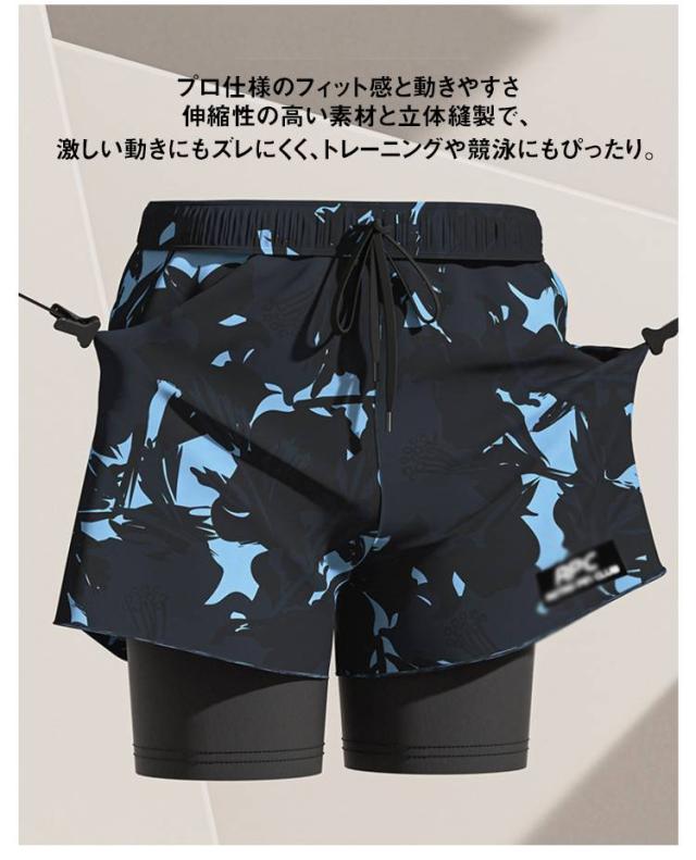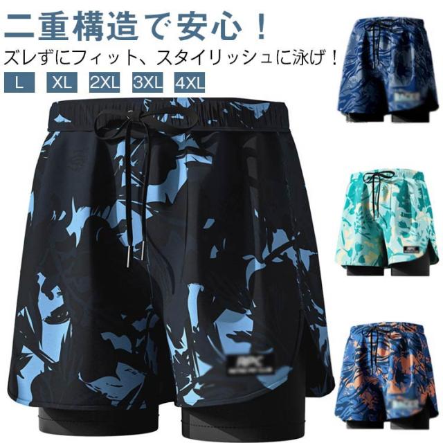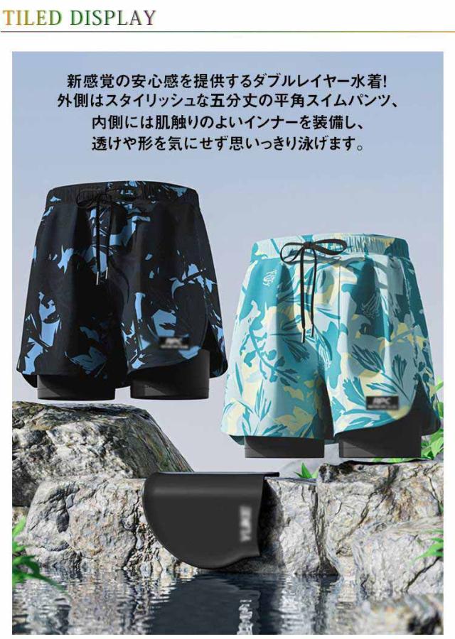 メンズ水着 ダブルレイヤー インナー付き サーフパンツ メンズ スイムパンツ 五分丈 ボクサーパンツ フィットネス水着 男性用 スイミングウェア 水泳 速乾 水着 送料無料