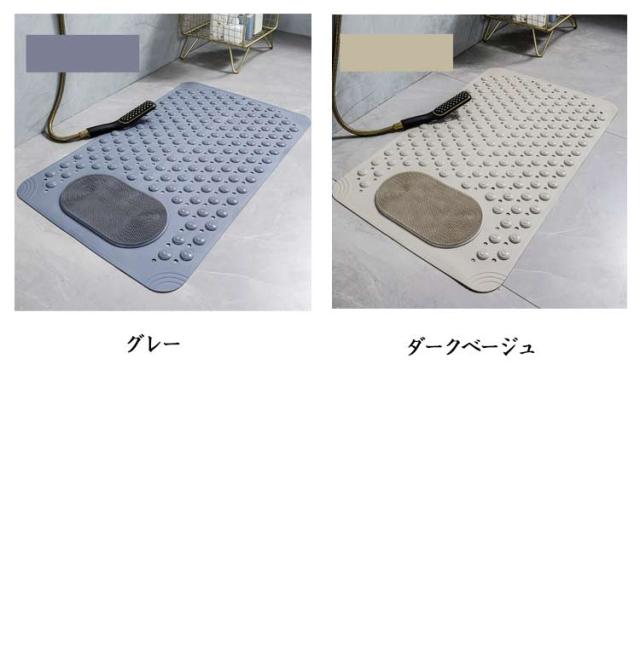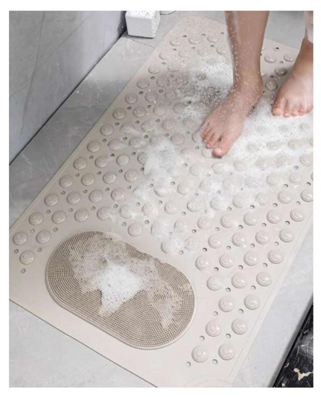 | 滑り止め機能にこだわって作られたお風呂マットです。 裏面にたくさんの強力吸盤が付いているため、接続面が濡れても滑りにくく、浴槽の底面や浴室の床にしっかり固定されています。 表面が凸凹加工が施してあり、洗い場で足を滑らせるリスクを軽減し、浴槽内に設置すると長時間の半身浴時に姿勢を安定させやすいのも魅力です。 浴室マットに楕円形の短めの毛を使用したフットブラシが付いています。 高品質のPVC素材で作られて柔らかく快適な使用感になっているすべり止めマット。 滑りや転倒を防ぎ、子供や高齢者がいる家庭にも適しています。介護向けお風呂用滑り止めマットです。 | |