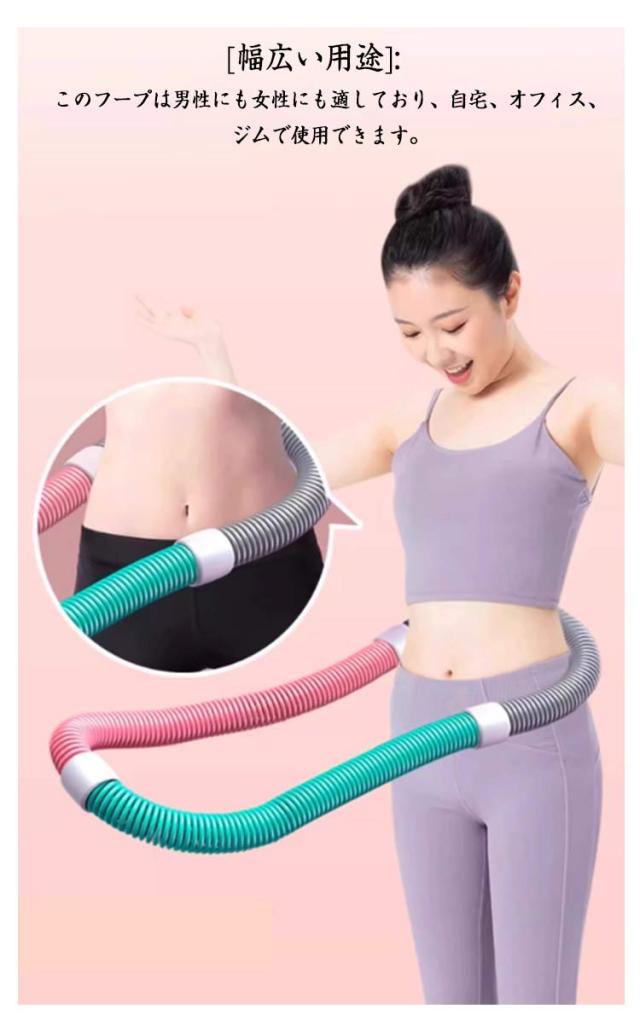 | [使いやすい]:このフィットネスフープは、あらゆる体型にフィットします。柔軟な回転と静音性、スムーズな回転で、快適なスポーツ体験を提供します。 [持ち運びに便利]:持ち運びに便利な設計で、ひねってコンパクトに折りたたむことができ、いつでも使用できます。 [素材]: このフープはPVCと内部に重みのある合金スプリングで作られており、破損を防ぎ、ウエストにぴったりフィットし、不快感や怪我を引き起こすことなく長時間使用できます。 [幅広い用途]: このフープは男性にも女性にも適しており、自宅、オフィス、ジムで使用できます。 [多用途トレーニングツール]: このスプリングフープは、腰、胸、脚、背中など、体のさまざまな部分のトレーニングに適しています。 | |