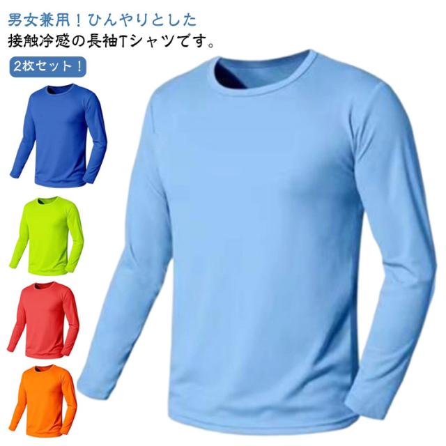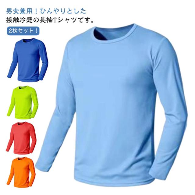 2枚セット インナーシャツ 接触冷感 tシャツ メンズ レディース 夏 長袖 涼しい トップス アイスシルク 長袖tシャツ Tシャツ 薄手 ストレッチ 吸水速乾 丸首 インナーシャツ 作業服 作業着 トレーニングウェア ゴルフ 野球 大きいサイズ バイク 釣り キャンプ スポーツ S-5XL